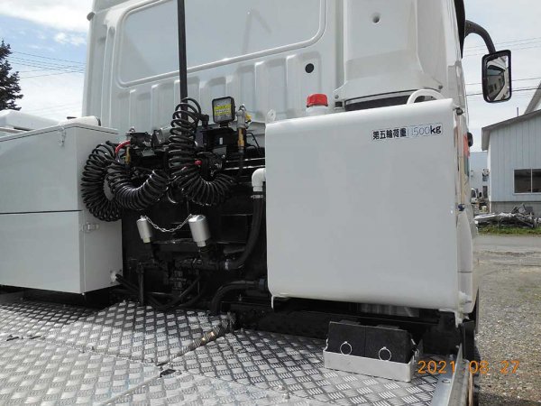 ★当社が得意にしているのは独自の架装技術にあります。働く車にはその業種(車種)に応じた装備(新車時に標準装備されていない)を取り付ける必要がありますが、当社が手掛けるのは「油圧装置」の部分。その装置を納める鉄のボックスも鉄板を加工して車輌に合った商品を制作・取付しています。