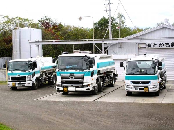 | 会社概要 | ■創業/平成4年(1992年) ■(本社)〒080-0027 帯広市西17条南3丁目30-9 ■(幕別工場)〒089-0781 幕別町字五位317番地 ■事業内容/廃油収集運搬・処理、再生油製造卸、他 ■車両台数/6台(内4台大型車輌) ■従業員数/6名 |