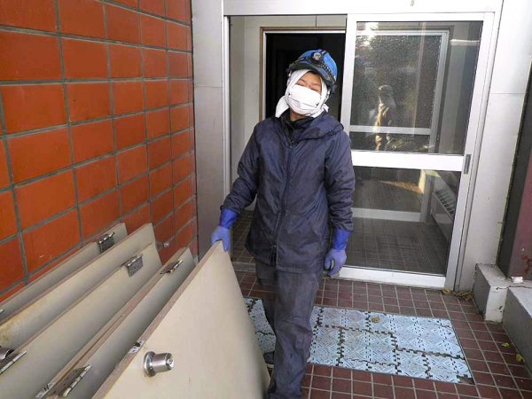 (1)始めに、一般住宅や店舗などの解体物件から、窓やサッシ・クローゼット扉など建具類を始め、内装品・諸設備など手作業で外せる部材は取り外し、搬出(